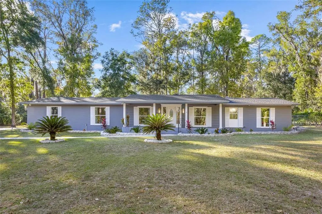 Welcome home to timeless style and a sparkling pool on 1.32 acres in the sought after West Hills neighborhood. Every inch of this dreamy Florida ranch has been thoughtfully renovated, blending luxury finishes with that easy Gainesville charm we all love. Located just a short walk to HCA North Florida and an easy drive to UF, I-75 and all that Gainesville has to offer, this home sits perfectly on a larger lot with mature trees and lush landscaping. Step inside and unwind in your own retreat featuring four bedrooms, two baths, and a sunny Florida room that opens to your newly refinished pool, ready for weekend dips and backyard gatherings. The kitchen is truly the heart of the home, inspired by Michelin level design and crafted with care. You’ll love the oversized island, premium stainless appliances, double convection oven with air fryer combo, pot filler, and custom floor to ceiling cabinetry. The kitchen flows seamlessly into a cozy family room with a wood burning fireplace and French doors that lead to the airy Florida room, an entertainer’s dream. Natural light pours through the new windows, highlighting the fresh finishes and modern touches throughout. The primary suite offers a spa like bathroom with dual sinks, quartz countertops, and double rain shower heads. The oversized two car garage includes a finished, air conditioned office or workshop, and the 12x18 wired shed out back adds even more space for projects or storage. Behind the scenes, the essentials are covered too with roof (2023), HVAC (2023), and water heater all recently updated. This is that Gainesville home with all the right details and heart, the one that just feels right when you walk in, don’t hesitate and miss your opportunity to call this one home.